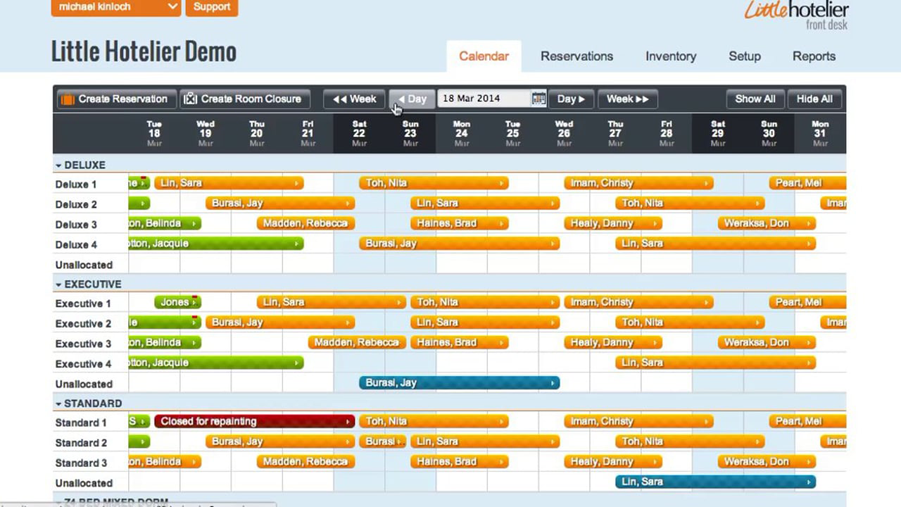 Take control of your front desk from one cloud-based login Access your easy drag-and-drop calendar interface from mobile, tablet or desktop. Create or cancel reservations, handle check-ins and check-outs, and create room closures in a few clicks